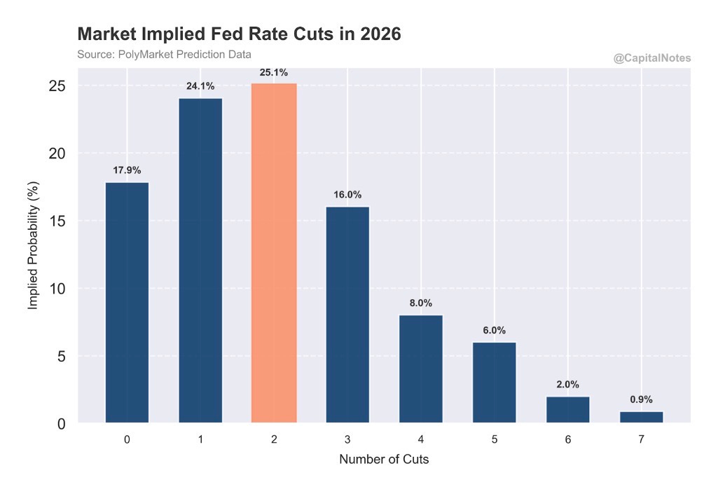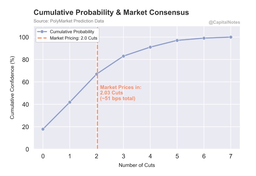 If the Truflation thesis is correct and consumer-facing CPI continues to fall toward 1%, the market is likely underpricing the number of cuts. The Fed would have significant room to ease.
