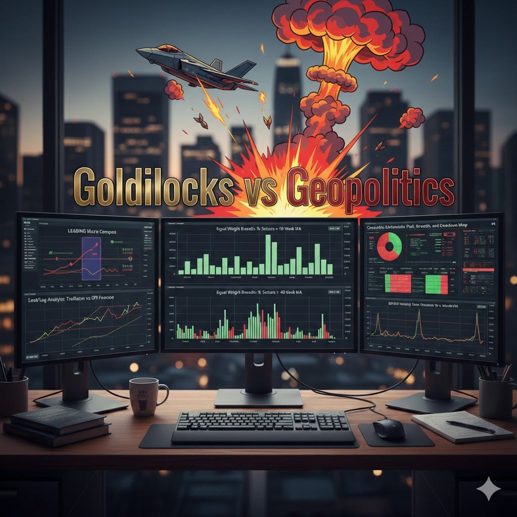 This weekend I was building my weekly chart pack when the world changed. On February 28th, U.S. and Israeli forces launched coordinated strikes on Iran. By Monday morning, the Strait of Hormuz was functionally closed, oil was surging, and the VIX had spiked above 23.