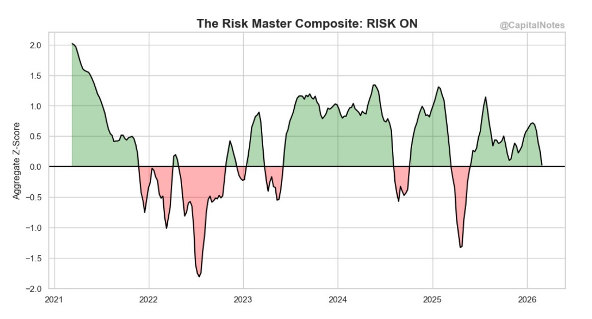 Despite the Iran shock, the composite still sits slightly above 0. That’s positive territory. Risk On.