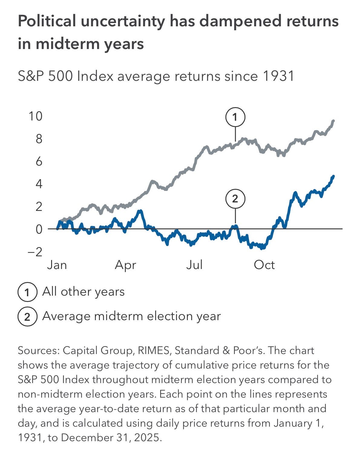 On top of everything else, this is a midterm election year. Historically S&P 500 returns have been far below average in the second year of a Presidency.