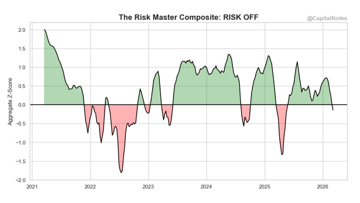 I’ll start with the big picture. My Risk Master Composite just crossed below zero into RISK OFF territory.